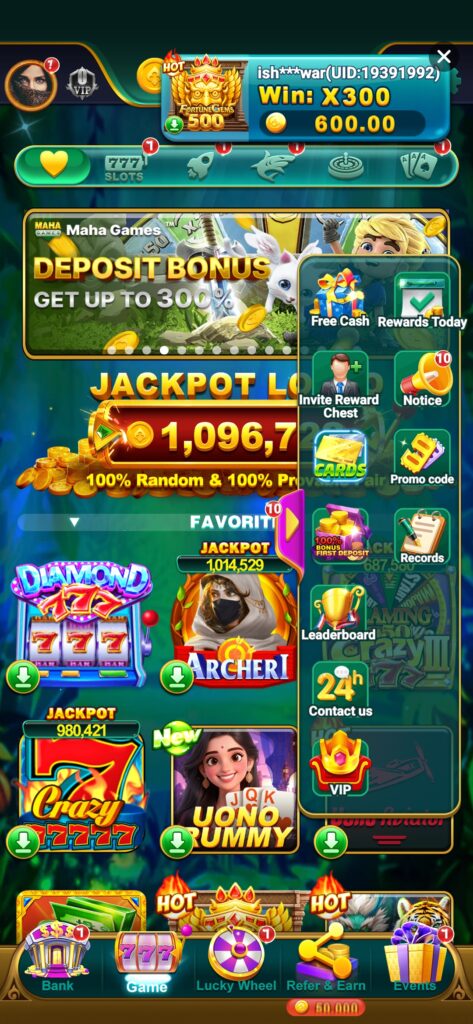 Maha Games me weekly tournaments, leaderboard contests aur festival events hote rehte hain. In events me participate karke aap extra cash prize aur gifts jeet sakte hain.